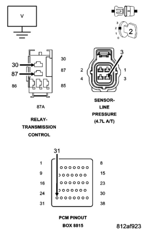 Line pressure is electronically controlled by the Transmission Control System and is measured by the Line Pressure Sensor (LPS). The desired line pressure is continuously being compared to the actual line pressure and is regulated by electronically changing the duty cycle of the Pressure Control Solenoid (PCS). (5% duty cycle = solenoid off = max line pressure, 62% duty cycle = solenoid on = min line pressure).