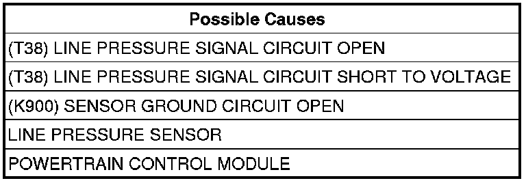 - Repair the (T38) Line Pressure Signal circuit for a short to voltage.