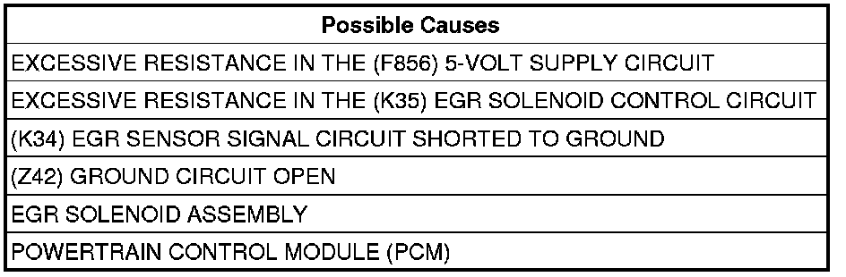 Measure the resistance of the (F856) 5-volt Supply circuit from the EGR Solenoid harness connector to the appropriate terminal of special tool #8815.
