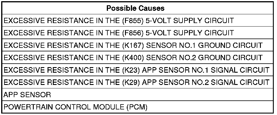 - Repair the excessive resistance in the (K29) APP Sensor No.2 Signal circuit.