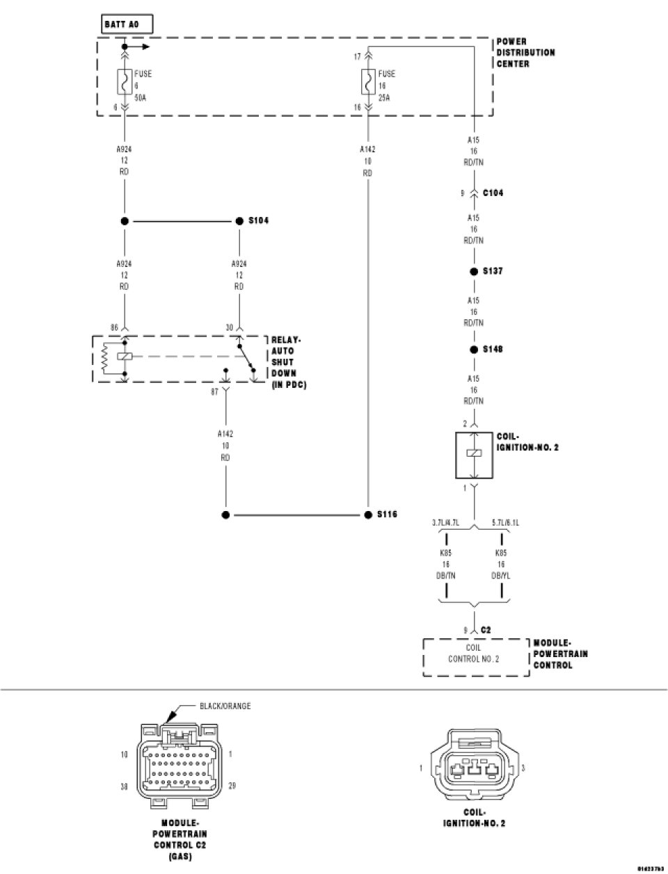 - Repair the open or short to ground in the (A15) ASD Relay Output circuit between the IPM and Coil harness connector.