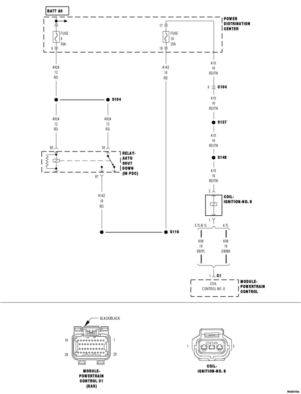 - Repair the open or short to ground in the (A15) ASD Relay Output circuit between the IPM and Coil harness connector.