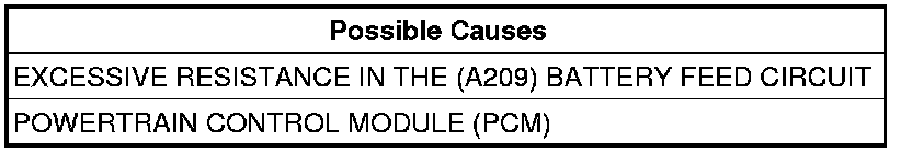- Repair the excessive resistance in the (A209) Battery Feed circuit between the PCM and IPM.