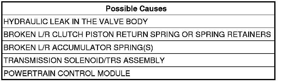 Look for possible leak paths into the L/R clutch hydraulics circuit within the valve body.