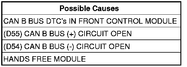 - Repair the (D55) CAN B Bus (+) circuit for an open.