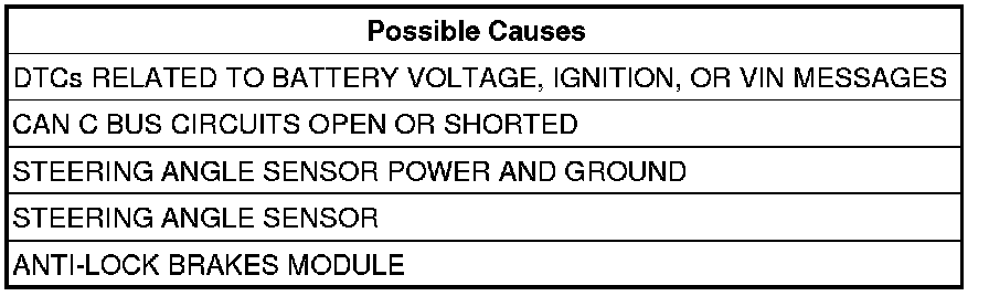 If the Anti-Lock Brakes Module fails to receive bus messages from the Steering Angle Sensor for approximately 100 ms.