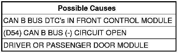 - Repair the (D54) CAN B Bus (-) circuit for an open.