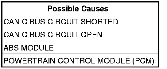 The ABS Module sends vehicle speed information over the CAN C Bus circuit to the PCM.