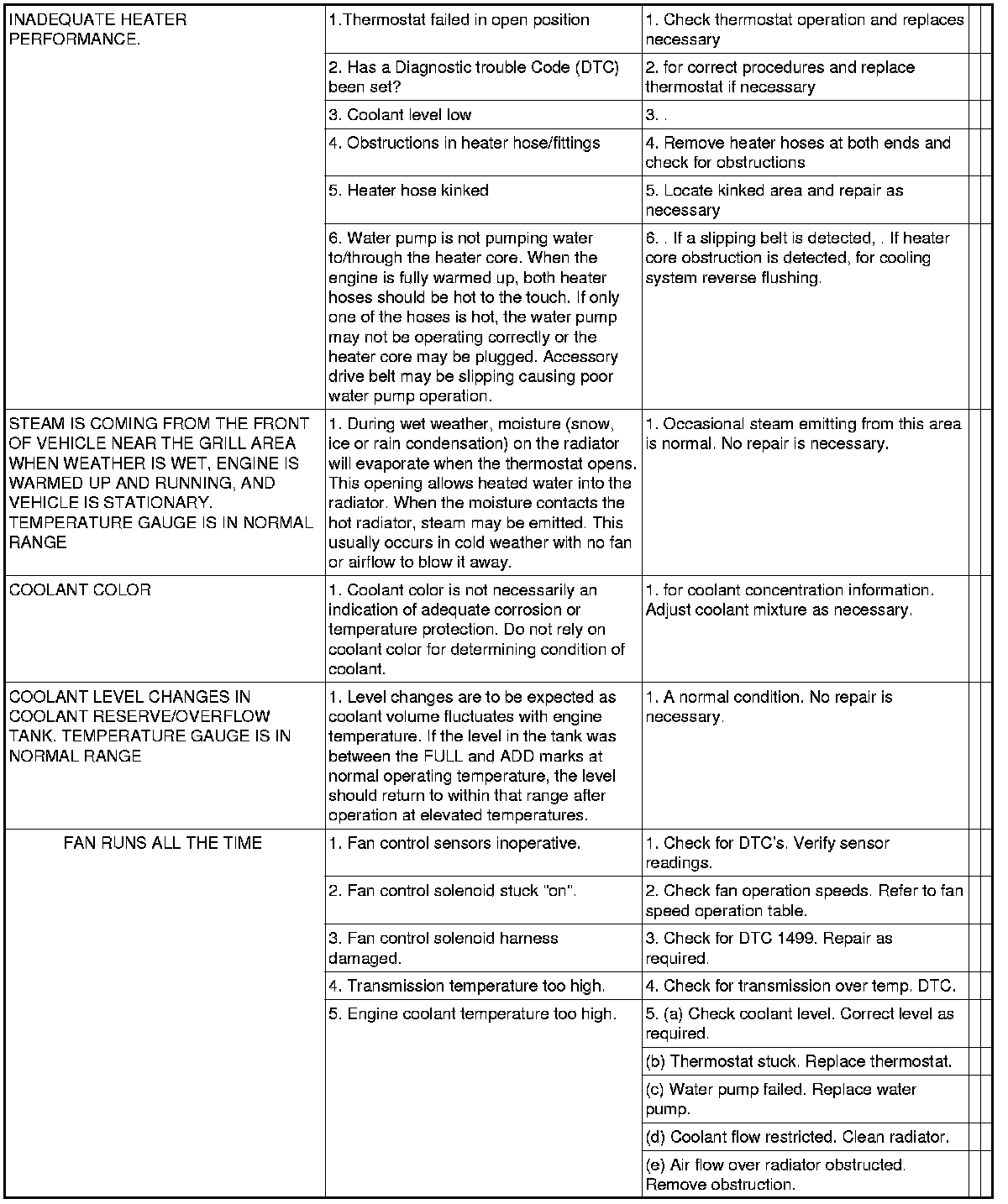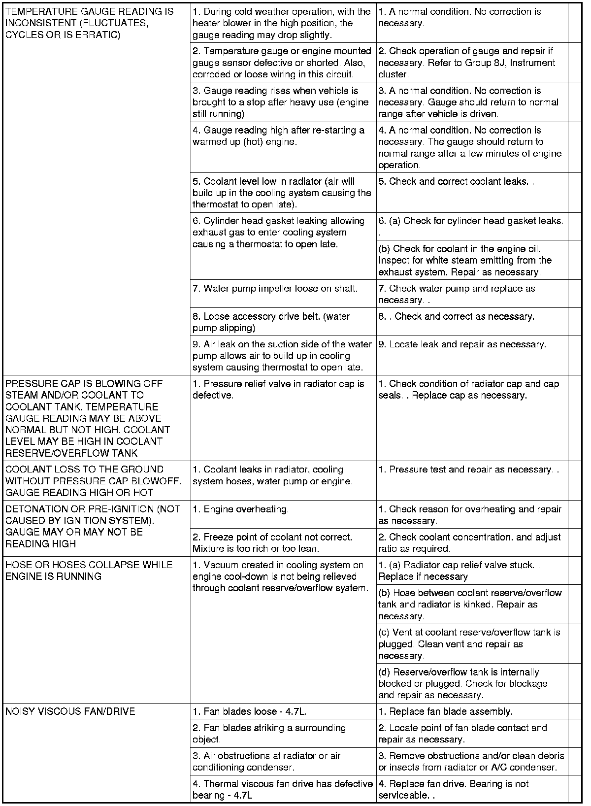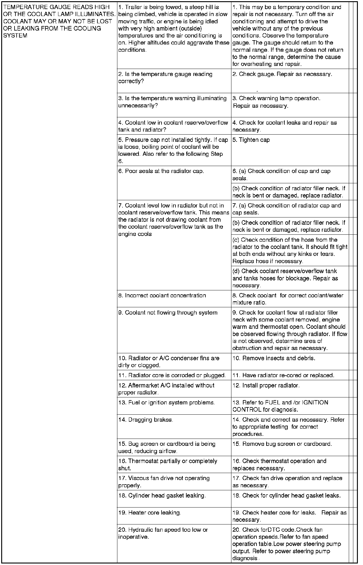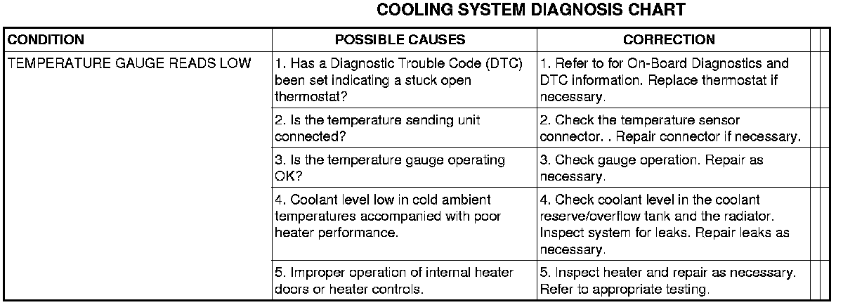 NOTE: If investigation reveals none of the previous items as a cause for an engine overheating complaint, refer to following Cooling System Diagnosis charts.