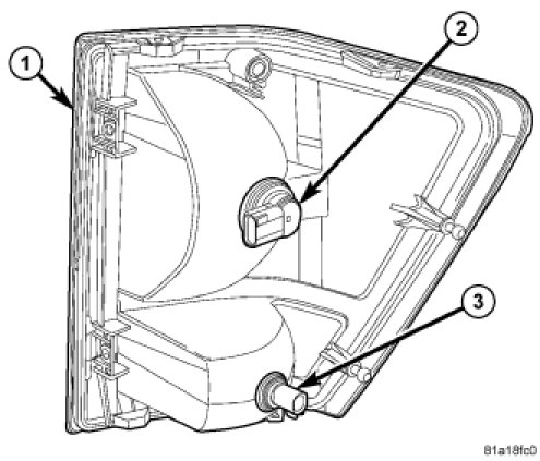 NOTE: The rear lamp unit for domestic markets (1) contains two bulbs: park/rear side marker/stop/turn signal (2) and backup (3). The service procedures for each bulb are the same, only the bulb sizes and types may differ.