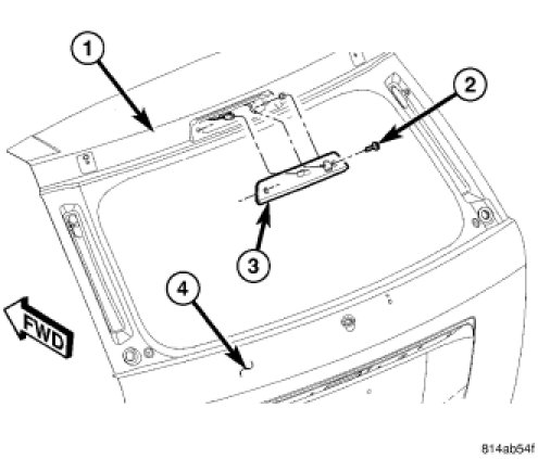 4. Position the CHMSL (3) into the liftgate header opening (1).