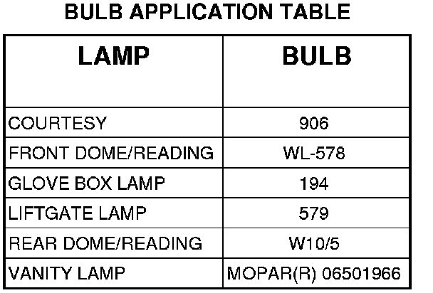 NOTE: All illuminated controls on the instrument panel and elsewhere in the interior of the vehicle have either miniature incandescent bulbs or Light-Emitting Diode (LED) units that are soldered to internal circuit boards and are not serviceable.