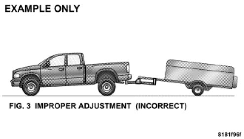 An improperly adjusted weight-distributing hitch system may reduce handling, stability, and braking performance, and could result in an accident.