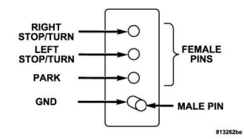 The electrical connections are all complete to the vehicle but you must mate the harness to a trailer connector. Refer to the following illustrations.