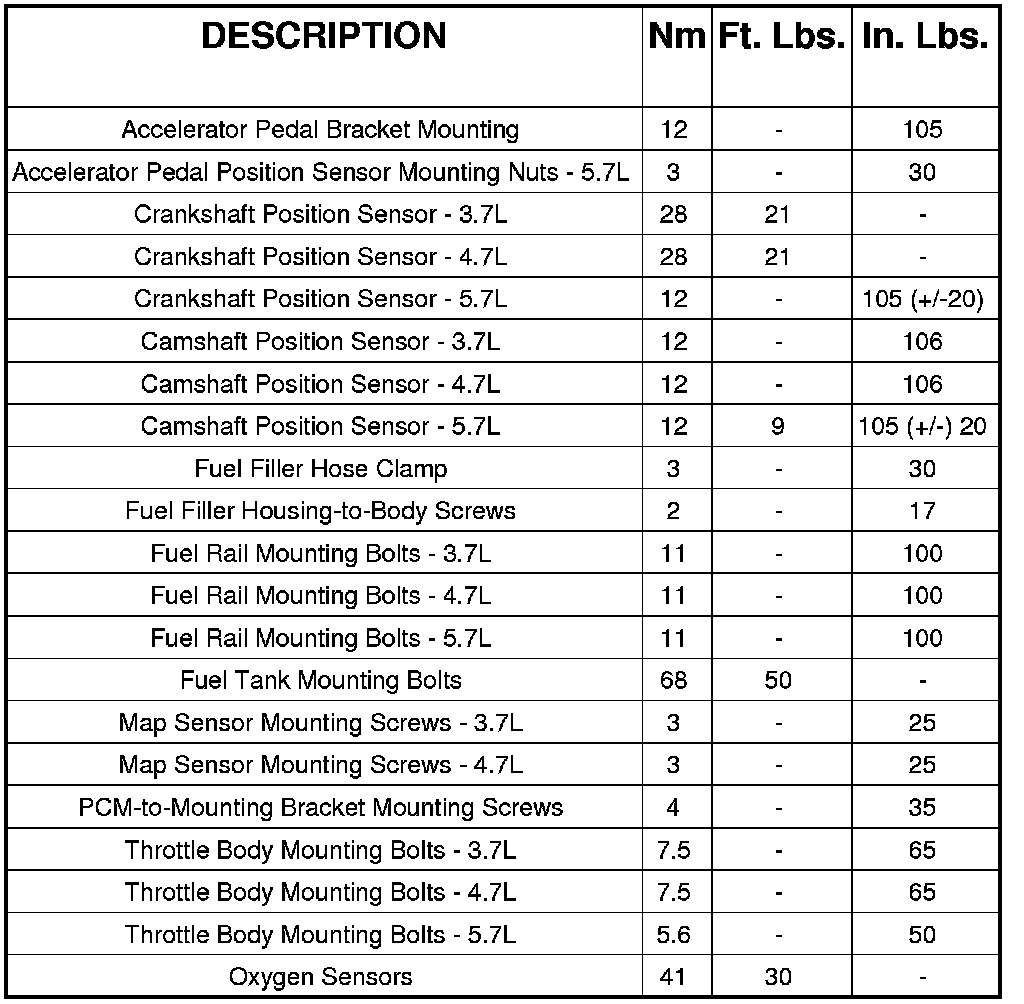 Fuel Delivery Torque Specifications