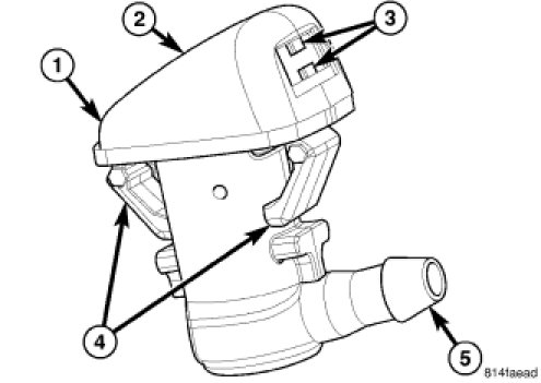 An integral diaphragm type check valve is contained within the body of each nozzle. The washer plumbing fittings (5) for the washer nozzles extend below the hood panel and are accessible from the engine compartment.