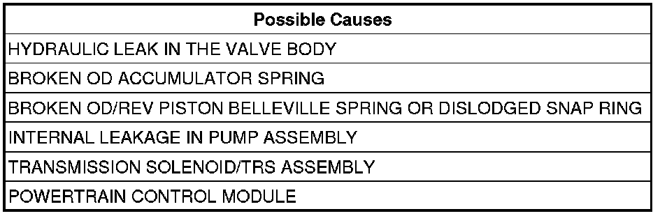 Look for possible leak paths into the OD clutch hydraulics circuit within the valve body.