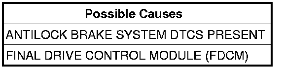 The Final Drive Control Module is receiving implausible data for vehicle speed, wheel speed, brake switch status, longitudinal acceleration, yaw rate, or lateral acceleration from the ABS controller.