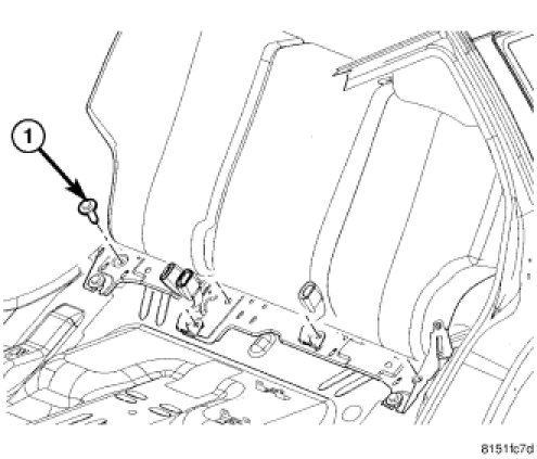 1. Place the rear seat back into position by slipping the hinge bracket onto the two outboard lower bolts.