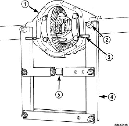 4. Loosen differential (3) bearing caps (1).