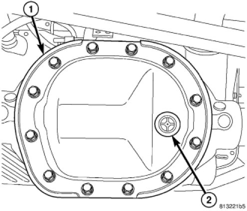 2. Remove differential cover (1) and drain fluid.