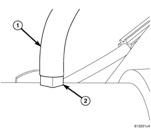 9. Remove axle vent hose (1) from axle vent (2) and cover bracket.