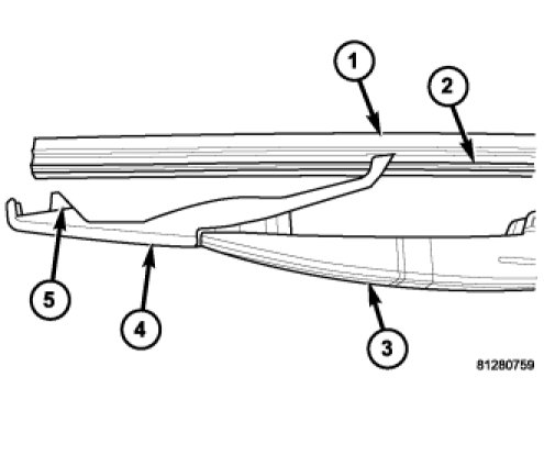 2. Grasp one of the wiper blade links (4) firmly with one hand, and grasp the wiper element (1) and flexor (2) midway between the two sets of claws (5) for that link with the other hand.