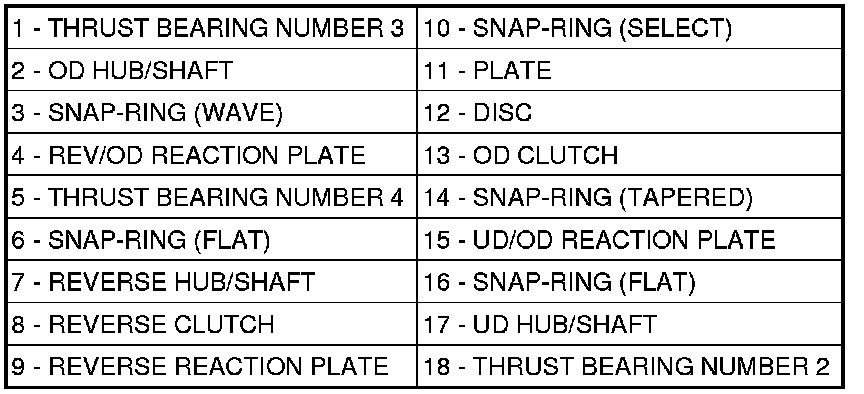 NOTE: When installing the OD / Reverse piston Belleville spring, orientate it such that it contacts a new surface on the piston.