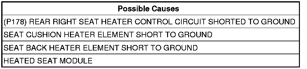 3. (P178) RIGHT REAR SEAT HEATER CONTROL CIRCUIT SHORTED TO GROUND