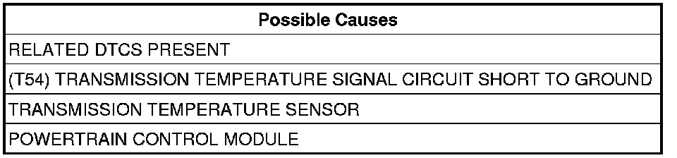 - Repair the (T54) Transmission Temperature Signal circuit for a short to ground.