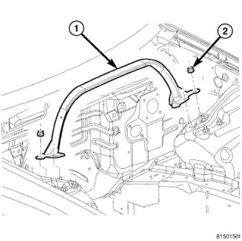 1. Remove the strut tower support (1).