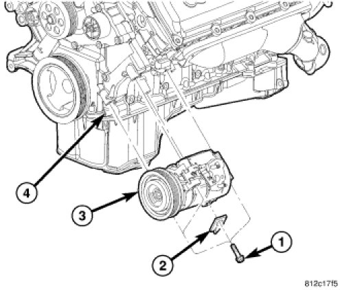 9. Remove the A/C compressor while leaving the lines attached. Secure compressor out of the way.