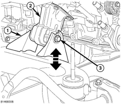 17. Remove engine front mount to frame bolts (3) and nuts.