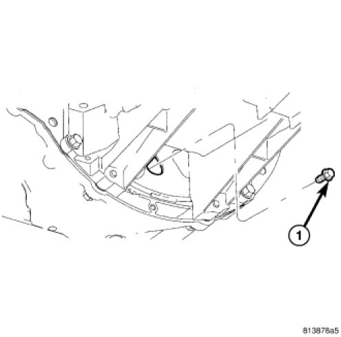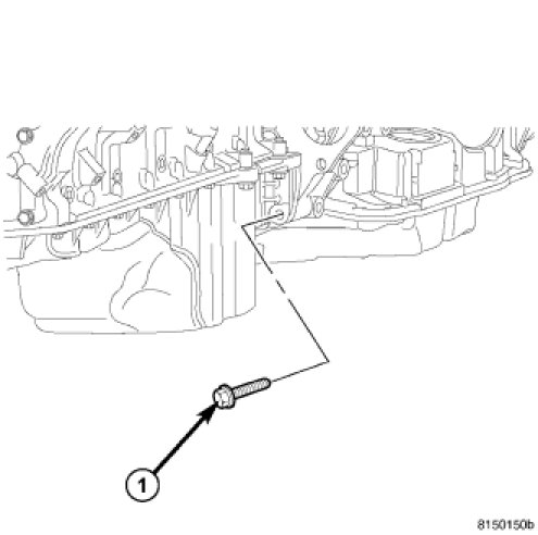 23. Remove the oil pan to transmission bolts (1).