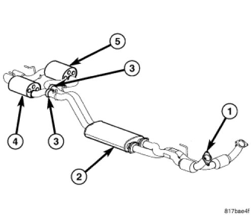 4. Make sure the resonator and tailpipe assemblies (4 and 5) are correctly positioned and the properly aligned. The minimum clearance between components is 25mm (1 inch).