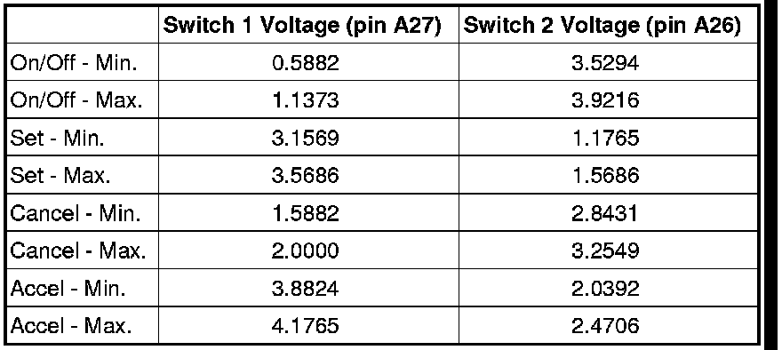 NOTE: Refer to the following table when diagnosing speed control switch voltage DTCs.