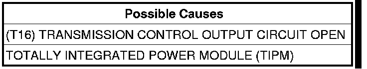 - Repair the (T16) Transmission Control Output circuit for an open.