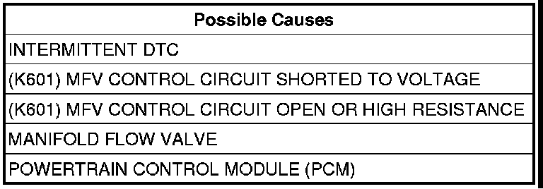 - Repair the (K601) MFV Control circuit for an open circuit or high resistance.