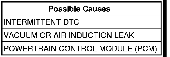 NOTE: An engine vacuum leak may cause this DTC to set. Thoroughly inspect the engine for a vacuum leak before continuing with this test. Repair as necessary.