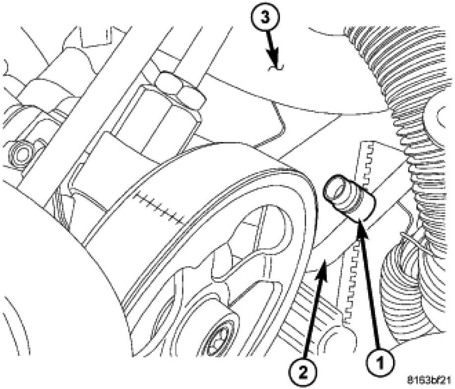 The low side service port (1) is located on the A/C liquid line (2) near the right front strut tower (3). Both the high side and low side A/C service port valve cores are serviceable.