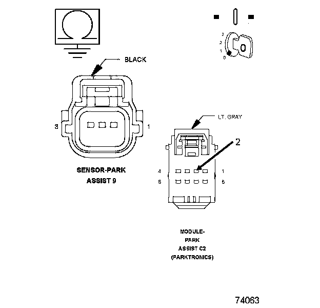 NOTE: The numbering system for the park assist sensors allows for up to twelve sensors on the vehicle, six front and six rear. The sensors are numbered in a clockwise manner starting at the left front bumper. The left front sensor (if equipped with front park assist) is the number 1 sensor. The numbering continues in a clockwise direction around the vehicle. Since Chrysler Group vehicles use only four rear sensors, sensor numbers 7 and 12 are omitted, so the left rear sensor is the number 11 sensor.