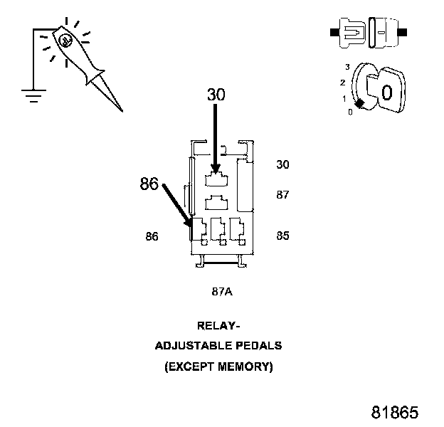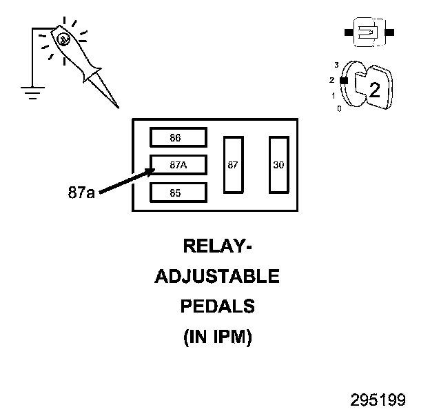 2. Using a 12-volt test light connected to ground, check the Adjustable Pedals Relay Output circuit.