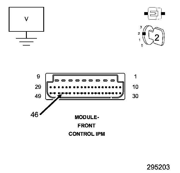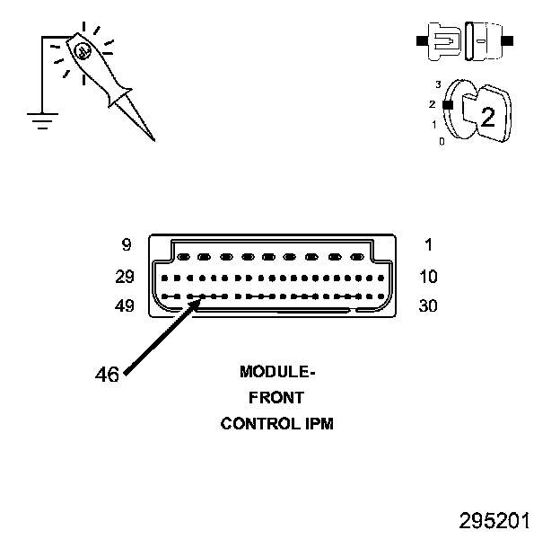 1. Using a 12-volt test light connect to ground, check the internal Fused B(+) circuits at the Adjustable Pedals Relay connector of the IPM.
