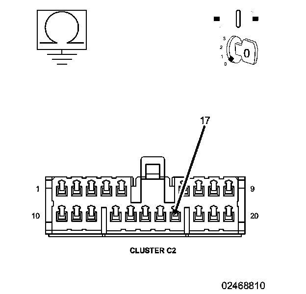 3. Measure the resistance between ground and the (F102) Ignition Run Relay Control circuit in the Cluster C2 connector.