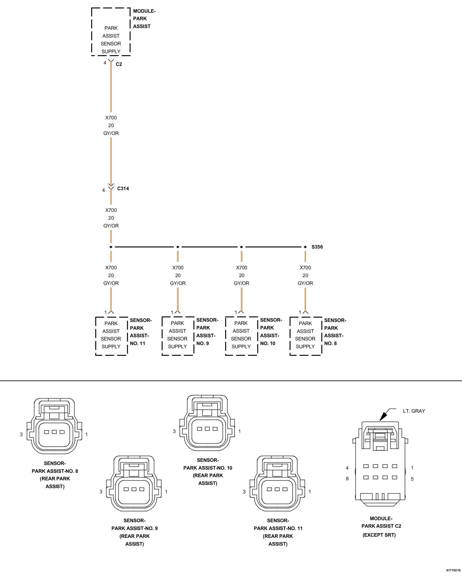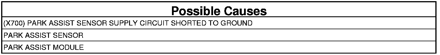 - Repair the (X700) Park Assist Sensor Supply circuit for a short to ground.
