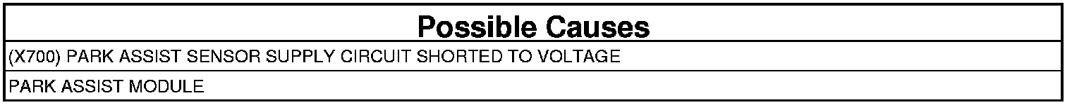- Repair the (X700) Park Assist Sensor Supply circuit for a short to voltage.