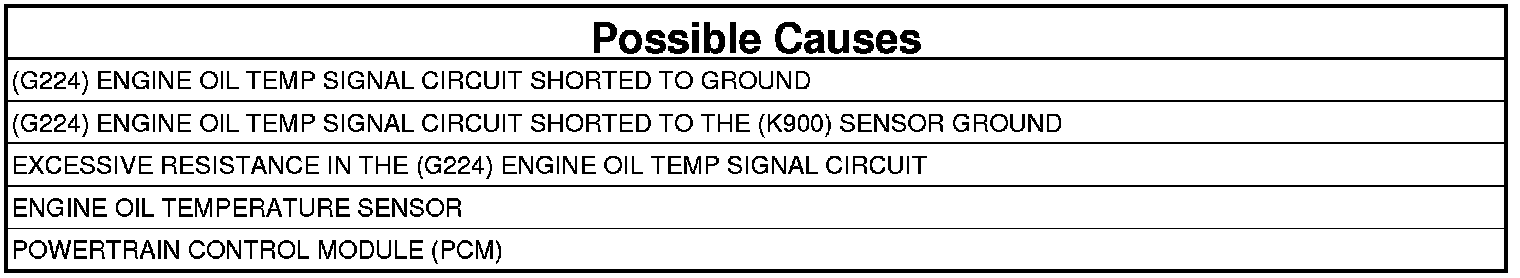 3. (G224) ENGINE OIL TEMP SIGNAL CIRCUIT SHORTED TO THE (K900) SENSOR GROUND CIRCUIT
