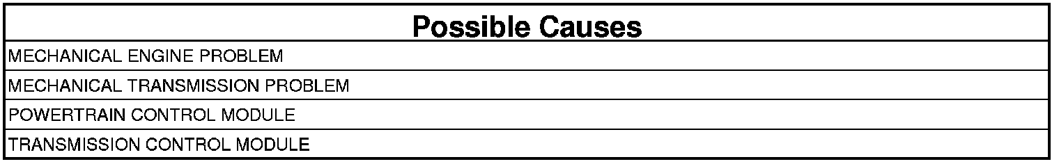 The Transmission Control Module (TCM) monitors the engine speed over the CAN bus. If the engine speed is greater than a calibrated limit (see table), the TCM assumes that either the information from the Powertrain Control Module (PCM) is incorrect or that a major mechanical problem exist. Once the DTC is set, the TCM will position the transmission gear into neutral to protect the engine and transmission from damage. The transmission will remain in neutral and will not be revaluated by the TCM until the ignition is cycled.
