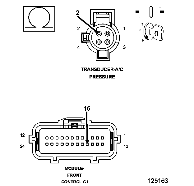 - Verify that there is good pin to terminal contact in the Transducer and Front Control Module connectors. If OK, replace the A/C Pressure Transducer.