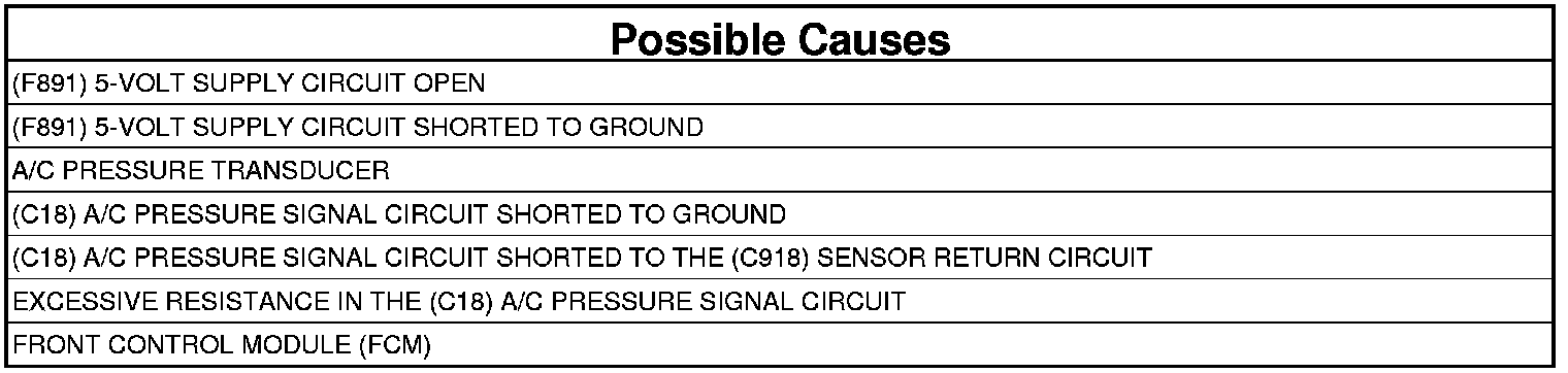 5. (C18) A/C PRESSURE SIGNAL CIRCUIT SHORTED TO THE (C918) SENSOR RETURN CIRCUIT